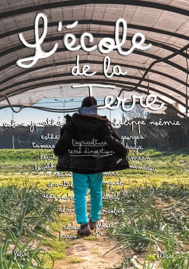 Comment valoriser le documentaire à travers une affiche qui reflète pleinement l’esprit de l’École de la Terre ? Nous avons tenté de créer des versions différentes, chacune mettant en lumière une facette du projet. Et vous, laquelle auriez-vous choisie ?